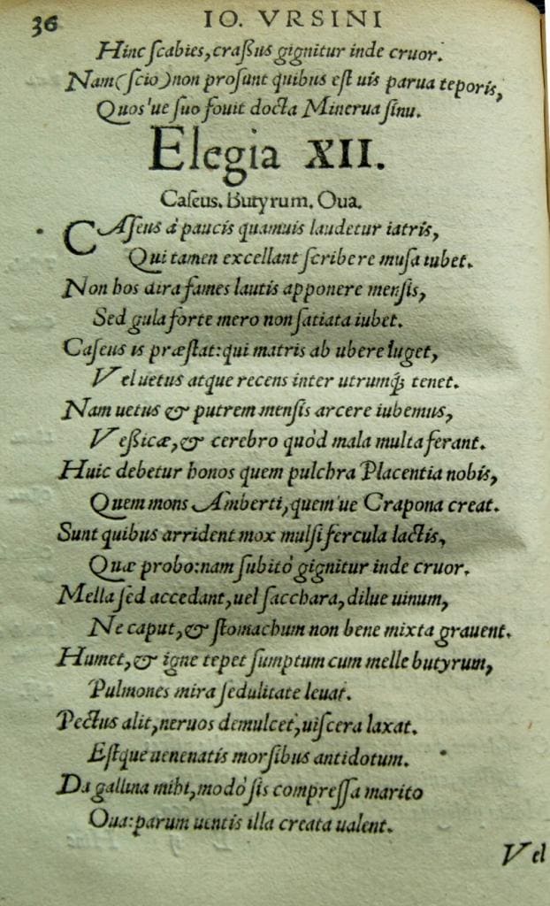Voici le célèbre Ursin, venu des rivages d'Hespérie (d'Italie), le seul qui t'apporte une aide immédiate (...) Il explique ici les puissances de la maladie, et ses causes cachées (...) Exulte, genre humain, applaudis, toi qui es parfaitement heureux, et érige tes illustres trophées pour ton cher Ursin.